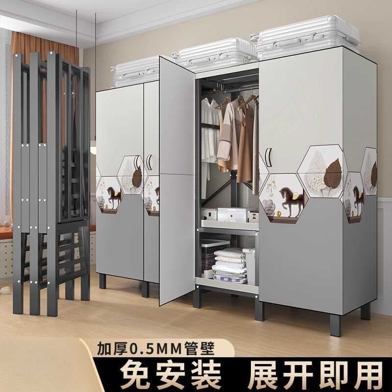 開門款衣櫃 壹體折疊磁吸 簡易布衣櫃 臥室家用 加粗加厚 免安裝衣櫥 全鋼架衣櫃 置物架