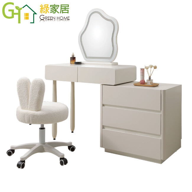 方案1 1入 售價$15802 均價$15802 商品介紹【綠家居】德恩2.7尺雙色伸縮觸控鏡面鏡台組合(含可升降化妝椅) 米白色系+安心材質製造,使用放心+搭配居家更便利,採用防潮MDF板+防潮耐磨底座+強化玻璃鏡面+泰迪短絨布料+高回彈泡棉等安心材質製造 ,外層採用防潮亮面噴漆處理搭配採用固定觸控鏡面+五抽屜+內&外開放層格等收納空間設計,全由專人配送到家,專業安心服務,替你省下更多時間!