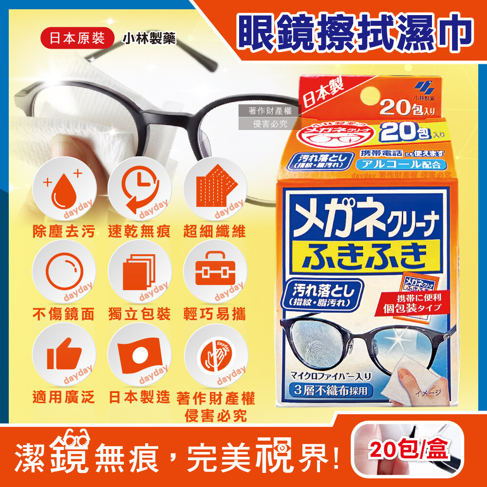 (12)依材質種類可能有變質的情形,請先在不顯眼處試用。分類 標籤 運送方式 廠商出貨,宅配到府 ( 限台灣本島地區,不含郵政信箱 ) 或超商取貨 出貨時間 如確認交易條件無誤且有庫存,商品將於您付款成功後 1 個工作天內快速出貨 配送時間 出貨後物流到貨另需 1-3 個工作天,恕無法指定日期時段。可使用訂單查詢追蹤出貨與物流明細。 發票 由廠商開立 售後服務 松果購物全站商品享 7 天鑑賞期 ( 非試用期 ),請安心購買。鑑賞期內保持商品全新狀態且包裝完整,可線上申請退貨。詳情請參考退貨說明。生鮮食品、個人衛生用品及美妝用品,除商品本身有瑕疵,一經拆封將影響退換貨權益。特殊商品如到府安裝的家電類商品,安裝過後且測試正常,即視同當場驗貨完畢,不另享 7 天鑑賞期。 商品評價你可能也會喜歡多用途鏡片高效防霧擦拭紙濕巾 有效防霧72H 眼鏡清潔 防霧擦拭巾 1入=1盒50片462人購買11日本Kobayashi小林製藥-去污速乾拋棄式清潔濕巾20包/盒-手機螢幕用4240日本Kobayashi小林製藥-雙效去污速乾拋棄式眼鏡擦拭清潔濕巾20包/盒-防霧綠標4240日本Kobayashi小林製藥-Bluelet免刷洗2倍星型去污消臭芳香馬桶清潔錠120g/盒4161人購買10日本Kobayashi小林製藥-淨味芳香長效約60天垃圾桶專用蘋果造型除臭貼2.7ml/盒4330日本Kobayashi小林製藥-無香空間居家室內消臭珠芳香除臭劑315g/盒(玄關鞋櫃浴廁,放置型)5100日本KAO花王-Biore蜜妮瞬間涼感約-3°C身體用清潔濕巾20抽/包4680眼鏡擦拭濕巾【50入/盒】眼鏡防霧濕巾 眼鏡布 擦拭布 眼鏡清潔 一次性鏡片擦拭 手機擦拭布 濕紙巾1440【肯尼士】KA-572596(18包)酒精 抗菌柔濕巾 隨身包20抽(濕紙巾 台灣製)4824人購買0原薘家伸縮OK繃 伸縮20入/盒(藍).伸縮12入/盒(綠).伸縮10入/盒(橘).伸縮綜合包12入562人購買1好奇 純水嬰兒濕巾一般型100抽x18包6997折2人購買11好奇 純水嬰兒濕巾 加厚型 20抽60包/箱11805.9折3人購買1