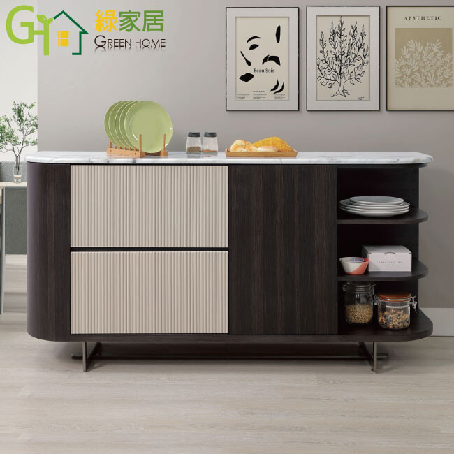 方案1 1入 售價$19368 均價$19368 商品介紹【綠家居】英格5.3尺雲紋石面二抽餐櫃 現代雙色系+安心材質製造,使用放心+搭配居家更便利,採用防潮MDF板+烤漆鐵製腳座+五金滑軌結構+20mm雲紋石面桌面板等安心材質製造 ,外層採用防潮耐磨噴漆處理搭配採用二抽屜+開放層格等收納空間設計,全由專人配送到家,專業安心服務,替你省下更多時間!