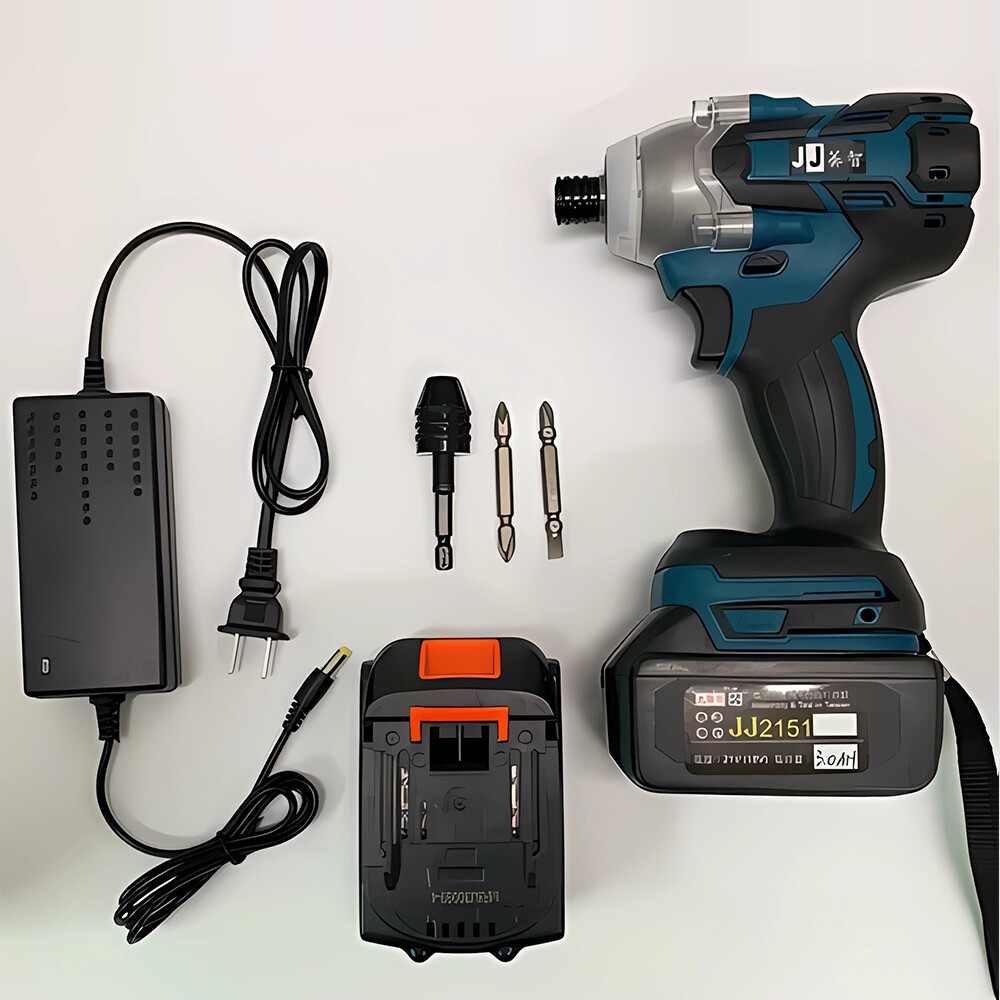鋰電無刷衝擊起子機 JJ(牧田款) 21V 3.0AH 藍綠配色 雙電池 線充簡配 /大功率無刷鋰