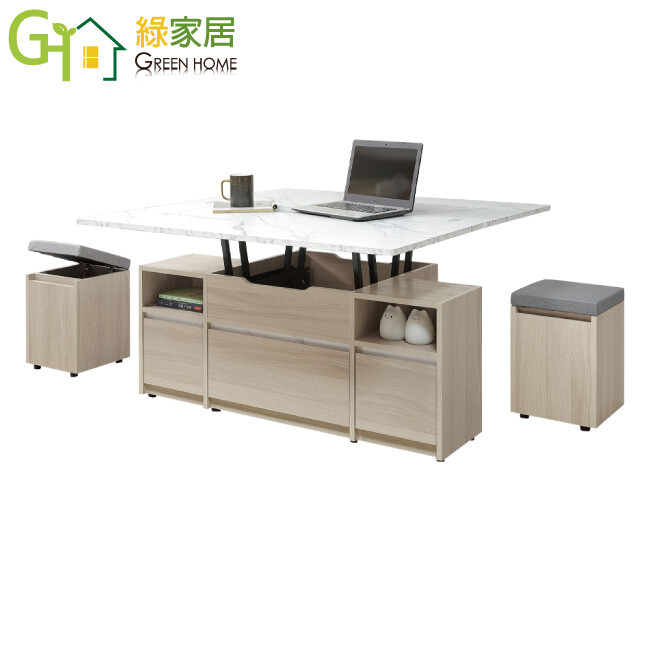 【綠家居】安卡蘭4尺升降大茶几(桌面可升降&展開使用+附椅凳二張)
