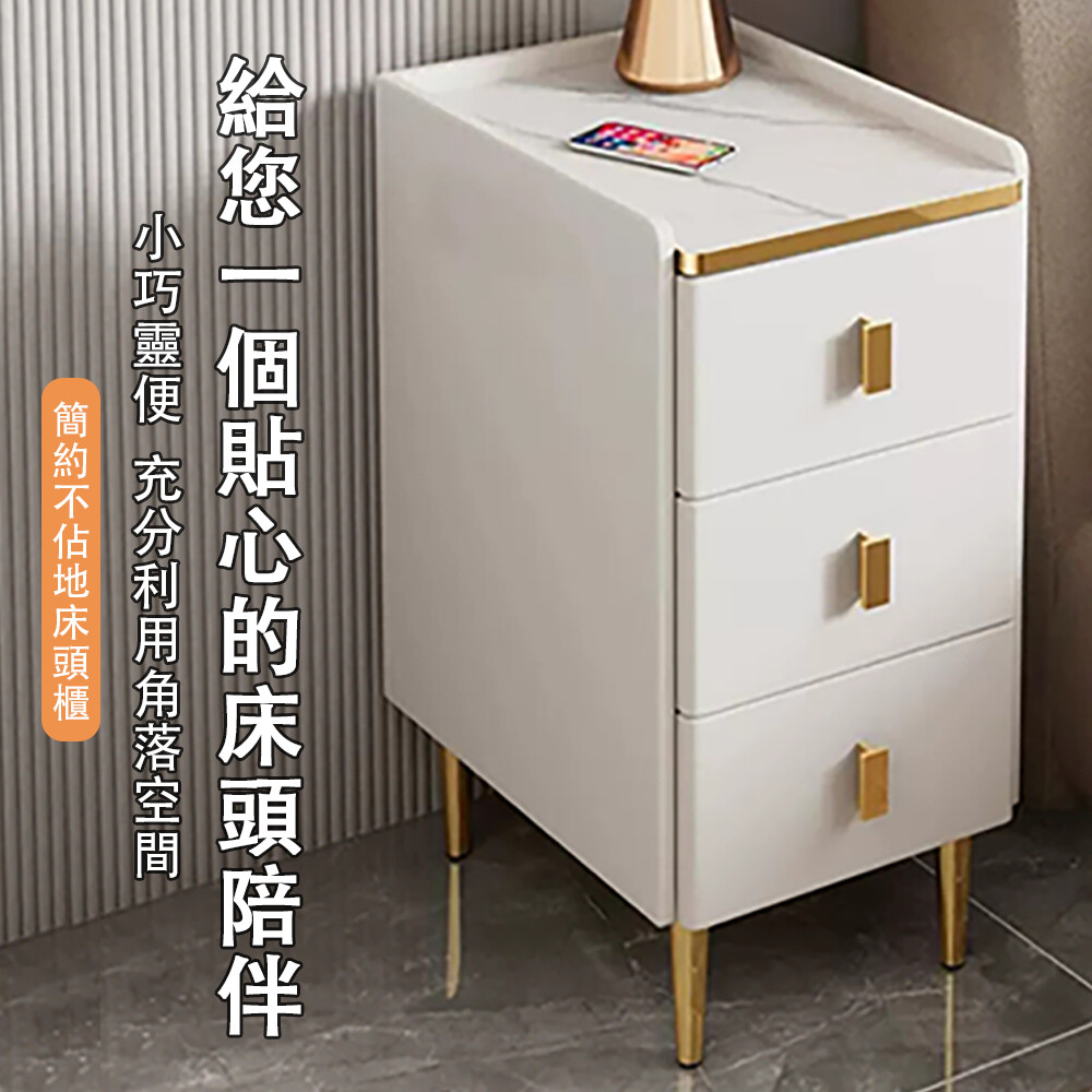 現貨 高檔輕奢 床頭櫃 北歐床邊櫃 小型迷妳收納櫃 簡約現代 超窄臥室 儲物櫃 米白三抽60cm高