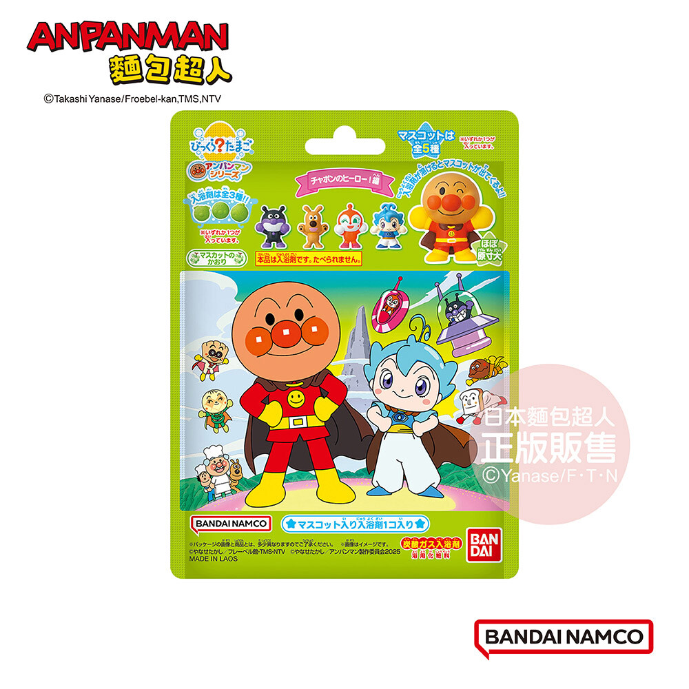 共有3種不同角色的大頭造型入浴球(細菌人/麵包超人/紅精靈),採隨機出貨。