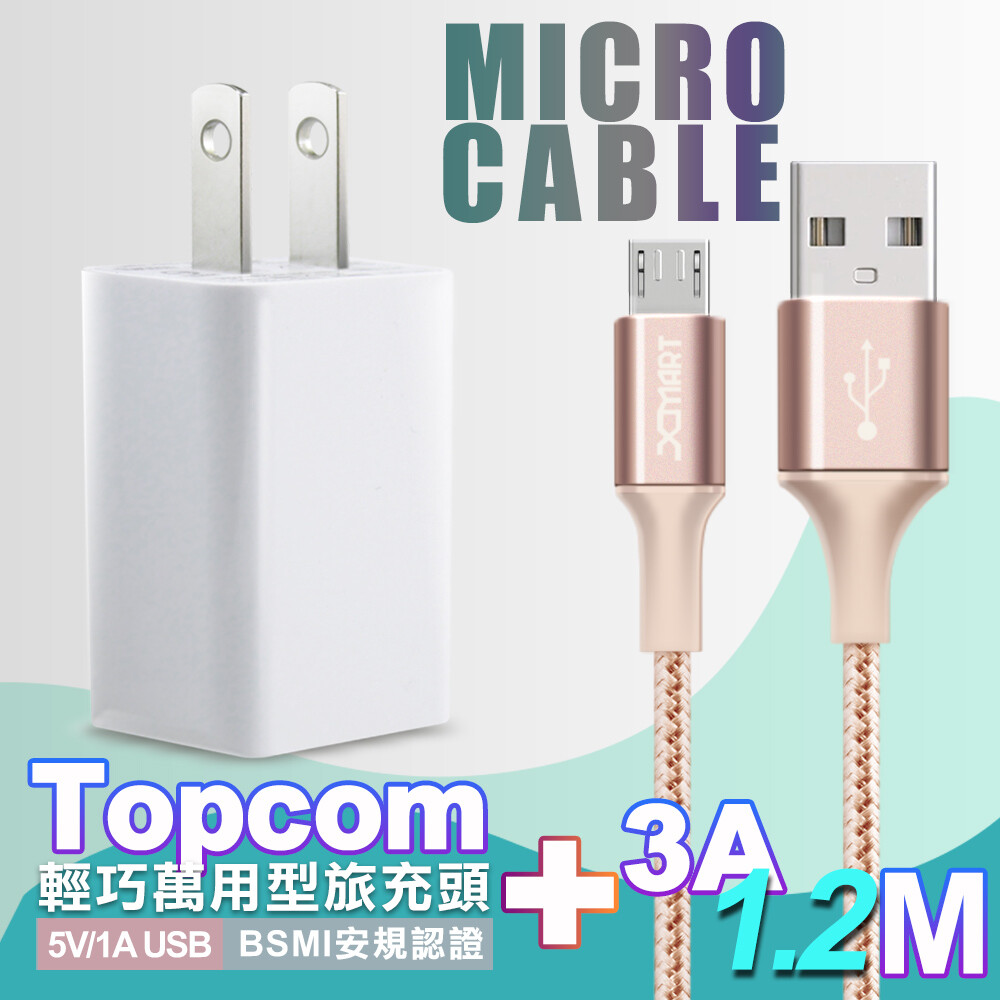 電池王 MICRO USB 輕巧充電組(旅充頭+ Micro 3A閃充編織傳輸線-120CM-粉)