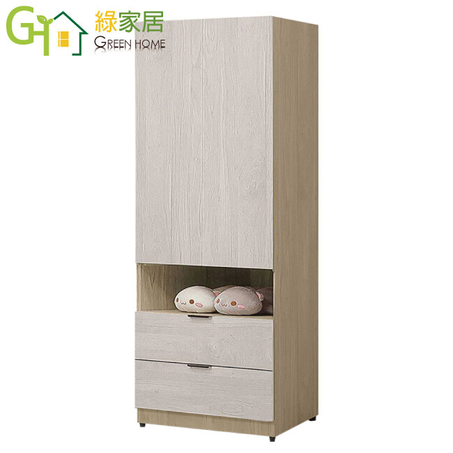 方案1 1入 售價$10278 均價$10278 商品介紹【綠家居】約奇2.5尺二門二抽衣櫃 木紋雙色系+安心材質製造,使用放心+搭配居家更便利,採用防蛀木心板+防潮耐磨底座+防夾手緩衝門片五金+五金滑軌結構等安心材質製造 ,外層採用防潮耐磨噴漆處理搭配採用開門櫃+吊衣桿+二抽屜+內&外開放多層格等收納空間設計,全由專人配送到家,專業安心服務,替你省下更多時間!