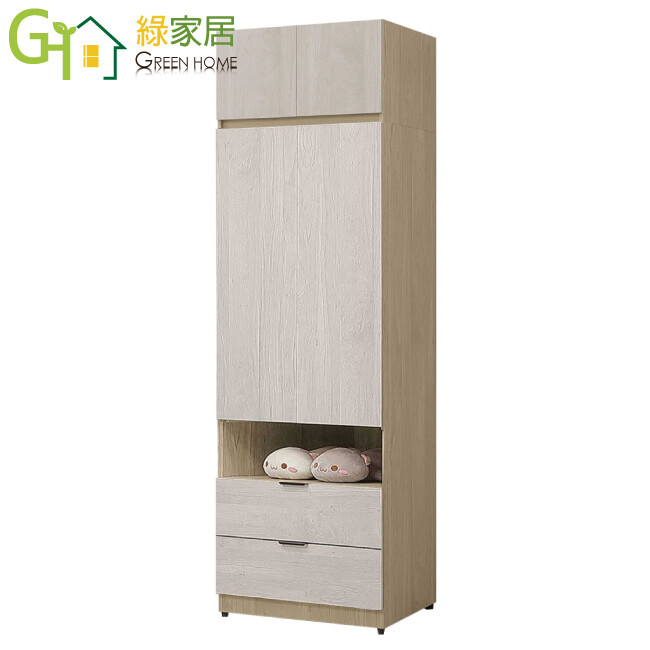 方案1 1入 售價$13355 均價$13355 商品介紹【綠家居】約奇2.5尺四門二抽加高衣櫃組合 木紋雙色系+安心材質製造,使用放心+搭配居家更便利,採用防蛀木心板+防潮耐磨底座+防夾手緩衝門片五金+五金滑軌結構等安心材質製造 ,外層採用防潮耐磨噴漆處理搭配採用開門櫃+吊衣桿+二抽屜+內&外開放多層格等收納空間設計,全由專人配送到家,專業安心服務,替你省下更多時間!