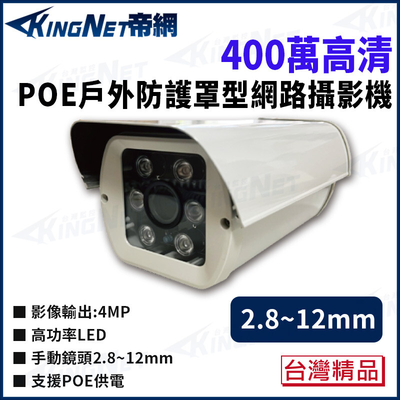 帝網 KingNet 400萬 IP POE 戶外防護罩槍型 網路攝影機 2.8-12mm紅外線50