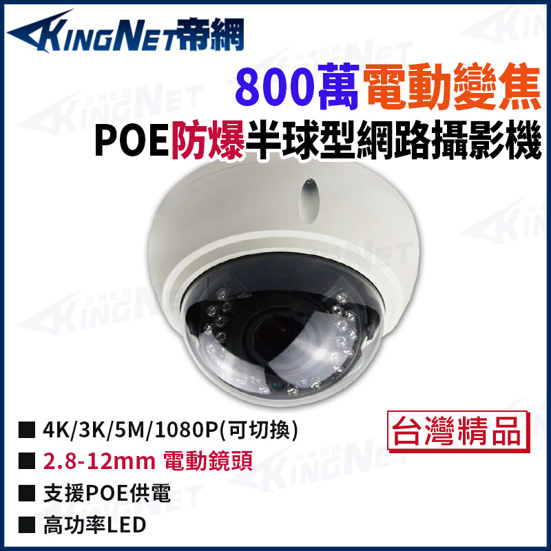 帝網 KingNet 800萬 POE 雙光源 電動變焦 2.8~12mm 戶外 半球型網路攝影機