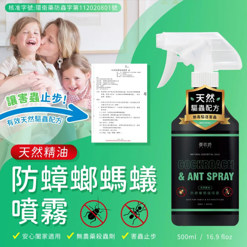 產品名稱:御衣坊天然精油防蟑螂媽蟻噴霧