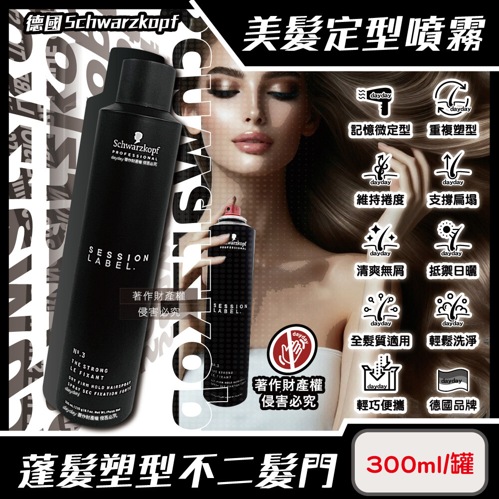 德國Schwarzkopf施華蔻-黑魔髮記憶塑型蓬鬆空氣感持久美髮定型噴霧-3號300ml/黑罐