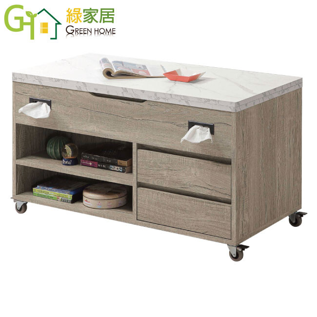 【綠家居】華卡雙色3.3尺仿石紋大茶几組合(桌面可升降+收納椅凳二張)