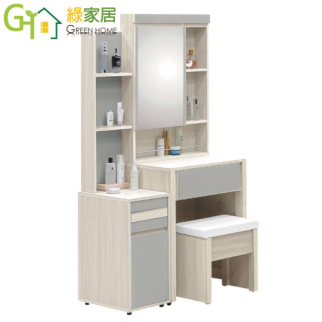 方案1 1入 售價$11537 均價$11537 商品介紹【綠家居】奇伊3尺開合鏡面鏡台/化妝台組合(鏡台+側櫃+含化妝椅) 木紋雙色系+安心材質製造,使用放心+搭配居家更便利,採用防蛀木心板+防潮耐磨底座+五金滑軌結構+強化玻璃鏡面等安心材質製造 ,外層採用防潮耐磨噴漆處理搭配採用開合鏡面櫃+二抽屜+拉合櫃+內&外開放層格等收納空間設計,全由專人配送到家,專業安心服務,替你省下更多時間!