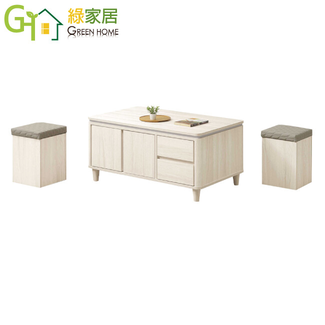 【綠家居】奧斯巴3.3尺開門二抽大茶几組合(收納椅凳二張)