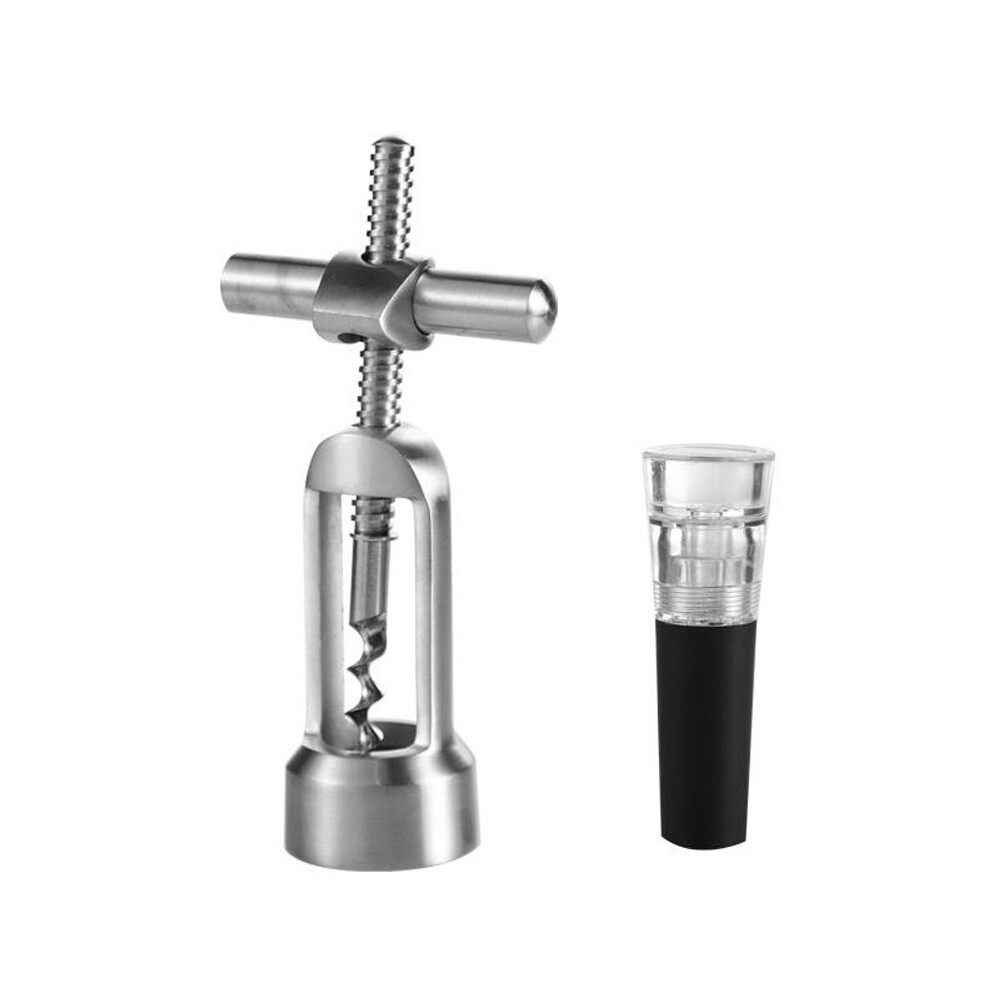 PUSH!餐廳廚房用品 304不銹鋼紅酒開瓶器 高檔手動葡萄酒起子 開酒器 酒具套裝 附瓶塞D390
