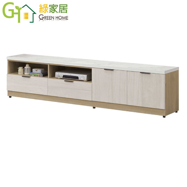 方案1 1入 售價$9160 均價$9160 商品介紹【綠家居】蘿克7尺二門二抽電視櫃 現代雙色系+安心材質製造,使用放心+搭配居家更便利,採用防蛀木心板+防潮耐磨底座+五金滑軌結構+防夾手緩衝門片五金+仿大理石紋美耐皿桌面板等安心材質製造 ,外層採用防潮耐磨噴漆處理搭配採用開門櫃+二抽屜+開放層格等收納空間設計,全由專人配送到家,專業安心服務,替你省下更多時間!