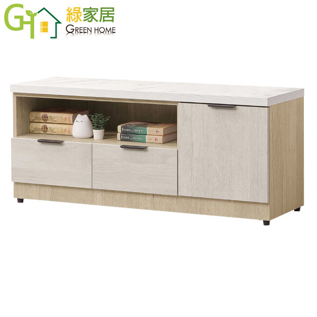 方案1 1入 售價$5803 均價$5803 商品介紹【綠家居】蘿克4尺開門二抽電視櫃 現代雙色系+安心材質製造,使用放心+搭配居家更便利,採用防蛀木心板+防潮耐磨底座+五金滑軌結構+防夾手緩衝門片五金+仿大理石紋美耐皿桌面板等安心材質製造 ,外層採用防潮耐磨噴漆處理搭配採用開門櫃+二抽屜+開放層格等收納空間設計,全由專人配送到家,專業安心服務,替你省下更多時間!