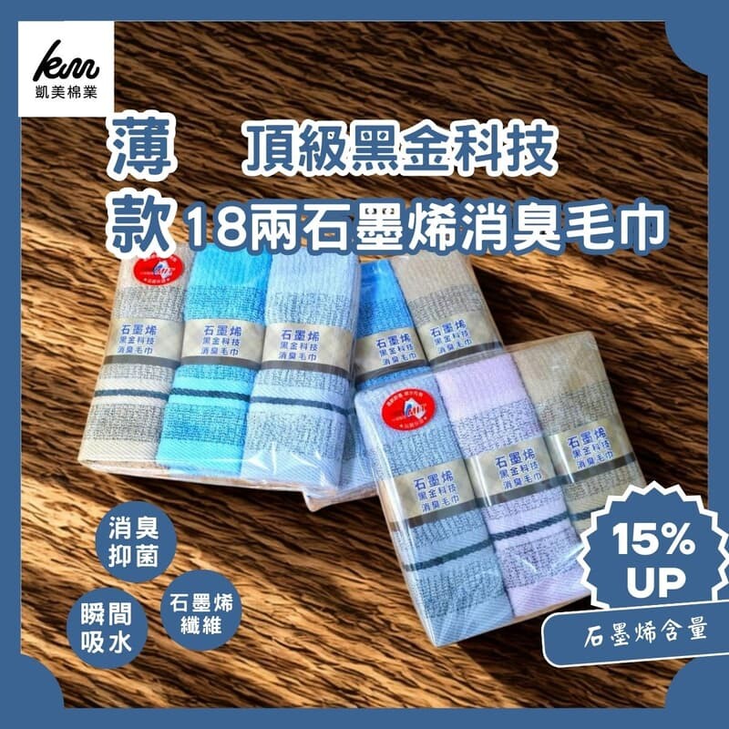 方案1 4入 售價$480 均價$120 方案2 8入 售價$940 均價$118 方案3 12入 售價$1380 均價$115 商品介紹MIT台灣製 頂級黑金科技 18兩薄款石墨烯消臭毛巾