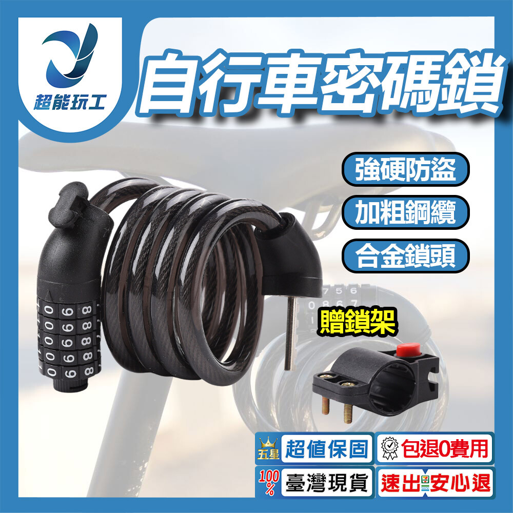 超能玩工 包退0費用●自行車密碼鎖 五位密碼鎖 腳踏車鎖 單車鎖 自行車鎖 可自設密碼 單車密碼鎖