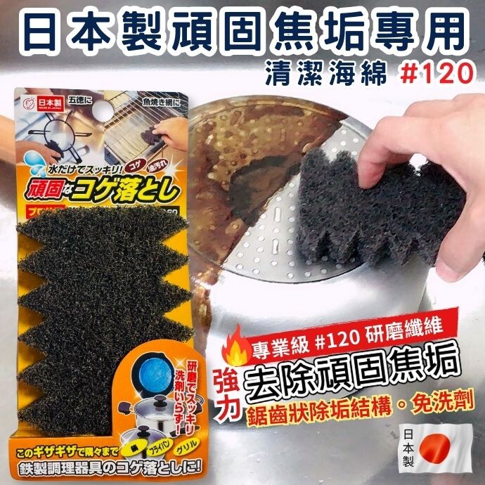工業級研磨力:專業#120 等級研磨材 × 尼龍不織布基材,專門針對焦垢與油垢的「黏、硬、厚」。