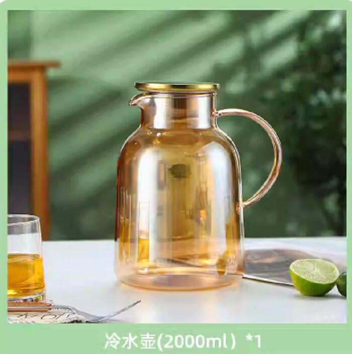 冷水壺玻璃耐高溫水杯家用客廳套裝涼白開茶壺開水壺花茶壺大容量琥珀色(2000ml)