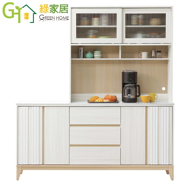 方案1 1入 售價$20417 均價$20417 商品介紹【綠家居】亞畢克6尺岩板多功能高餐櫃組合 現代雙色系+安心材質製造,使用放心+搭配居家更便利,採用防蛀木心板+防刮實木腳座+五金滑軌結構+5mm長虹直紋玻璃+防夾手緩衝門片五金+12mm高硬度岩板桌面板等安心材質製造 ,外層採用防潮耐磨噴漆處理搭配採用推門櫃+開門櫃+三抽屜+內&外開放層格等收納空間設計,全由專人配送到家,專業安心服務,替你省下更多時間!