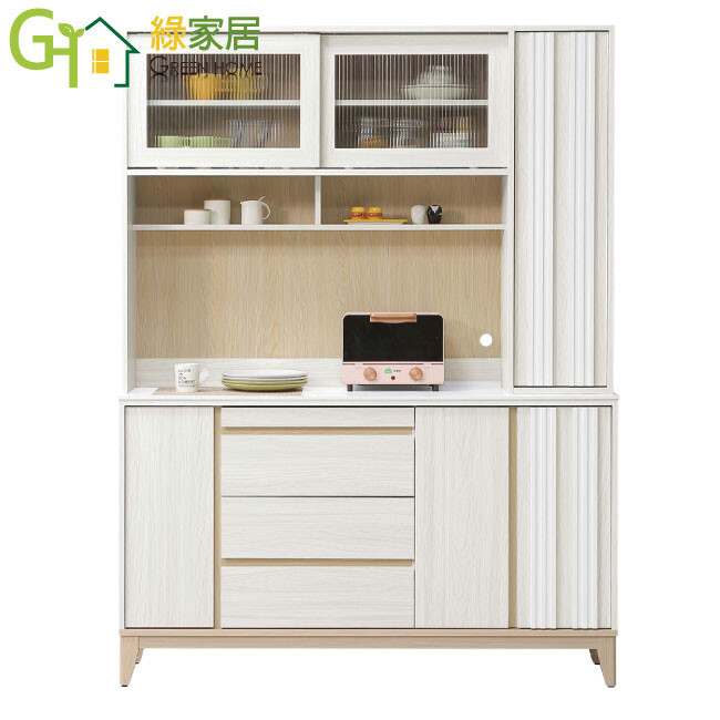 方案1 1入 售價$22724 均價$22724 商品介紹【綠家居】亞畢克5尺岩板多功能拉盤高餐櫃組合 現代雙色系+安心材質製造,使用放心+搭配居家更便利,採用防蛀木心板+防刮實木腳座+五金滑軌結構+5mm長虹直紋玻璃+防夾手緩衝門片五金+12mm高硬度岩板桌面板等安心材質製造 ,外層採用防潮耐磨噴漆處理搭配採用推門櫃+開門櫃+中置拉盤收納+三抽屜+內&外開放層格等收納空間設計,全由專人配送到家,專業安心服務,替你省下更多時間!