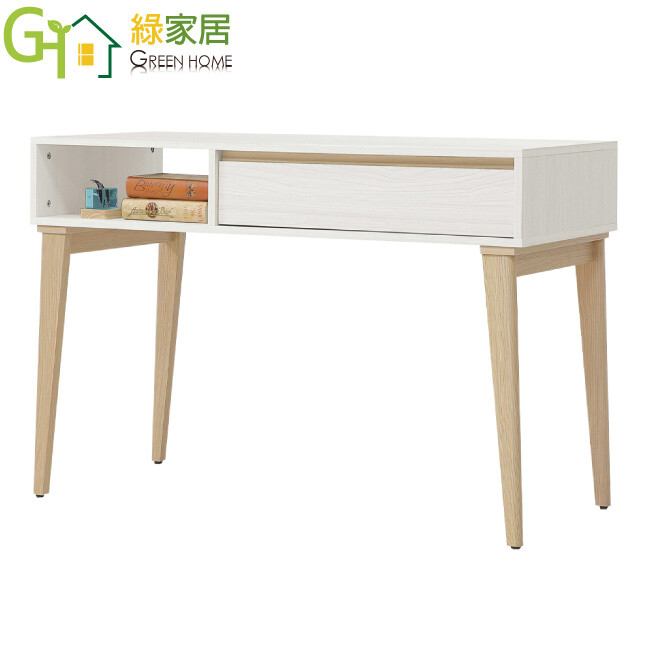 方案1 1入 售價$8181 均價$8181 商品介紹【綠家居】亞畢克4尺雙色單抽書桌 現代雙色系+安心材質製造,使用放心+搭配居家更便利,採用防蛀木心板+防刮實木腳座+五金滑軌結構等安心材質製造 ,外層採用防潮耐磨噴漆處理搭配採用單抽屜+開放層格等收納空間設計,全由專人配送到家,專業安心服務,替你省下更多時間!