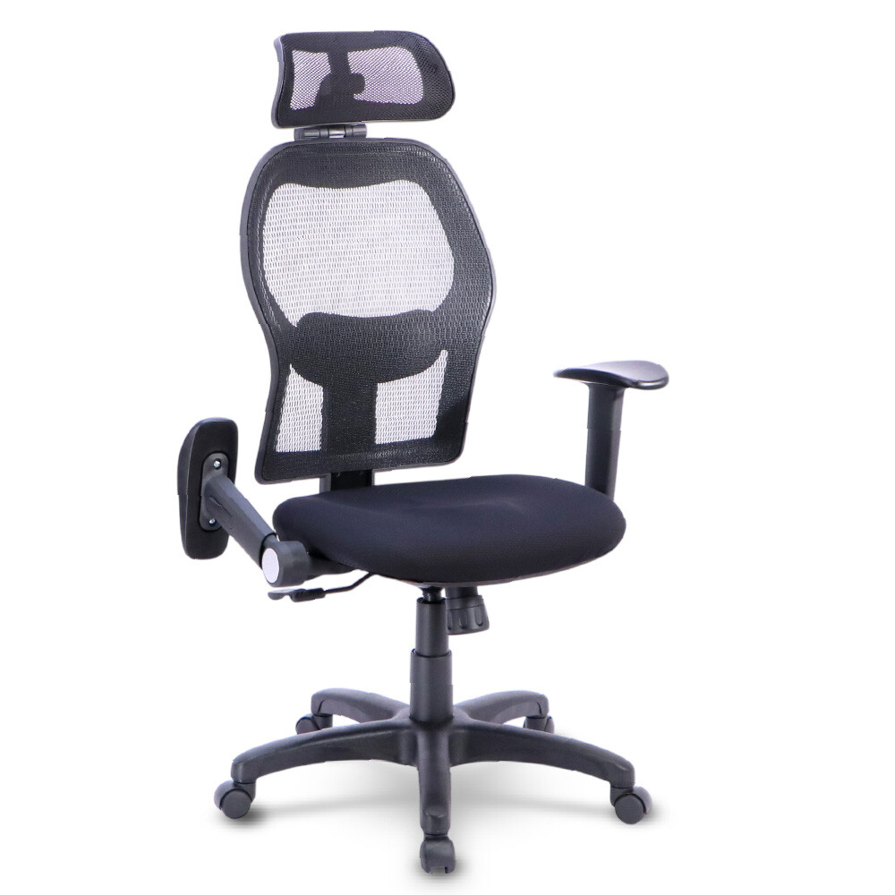 軟質PU扶手溫柔承托雙臂,單鈕操作方便,簡易可90度後收、上下升降。