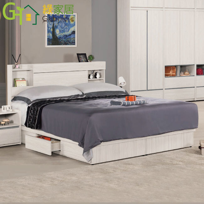 【綠家居】華爾5尺雙人三抽床台組合(可收納床頭片+三抽床底+不含床墊)