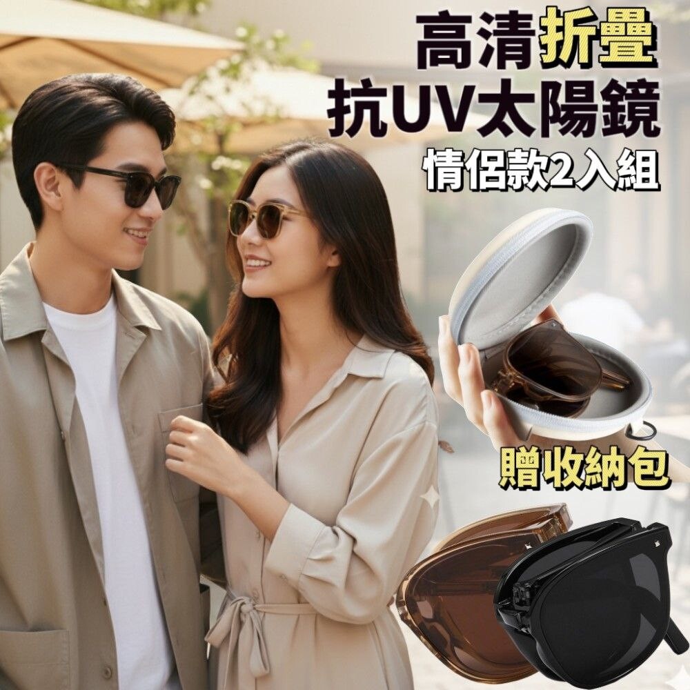 【SUNDAY】六節折疊抗UV太陽鏡 情侶款黑+棕2入組 加贈氣墊收納包 三段式摺疊 輕巧收納