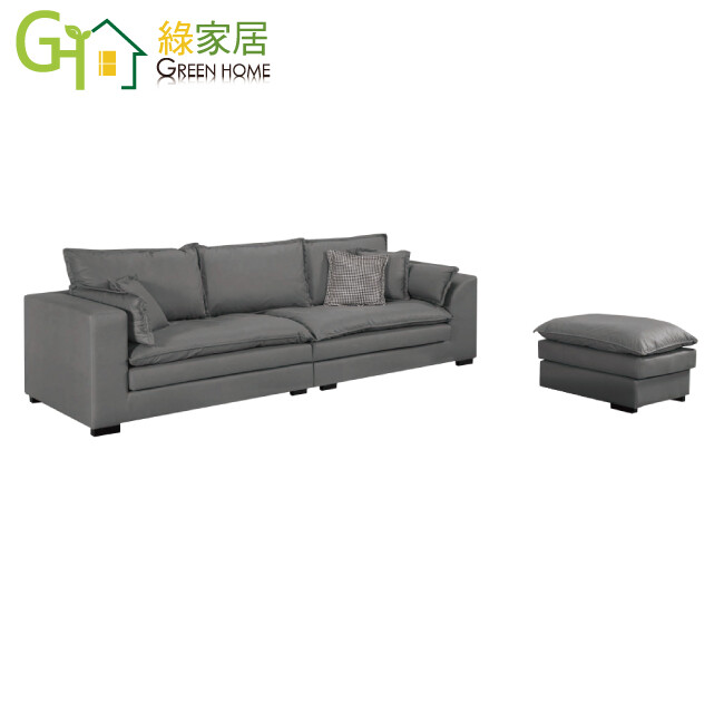 【綠家居】艾羅灰色柔韌科技布L型沙發組合(四人座+椅凳)