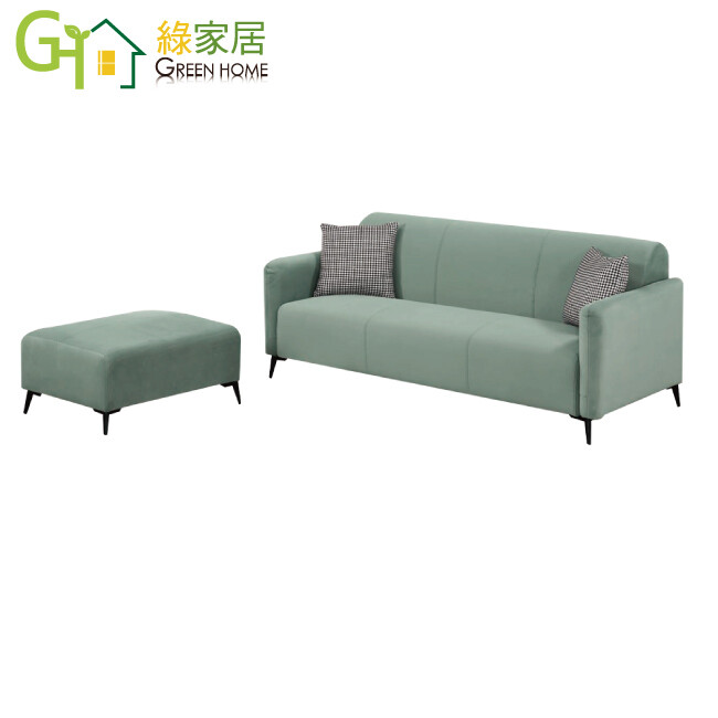 【綠家居】吉蕾灰色短絨布L型沙發組合(三人座+椅凳)