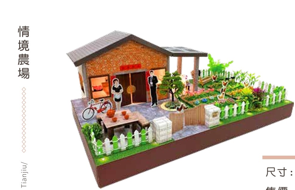 小屋舍/僕人*2/腳踏車/茶几茶具/休憩座椅/雞群/農場配置