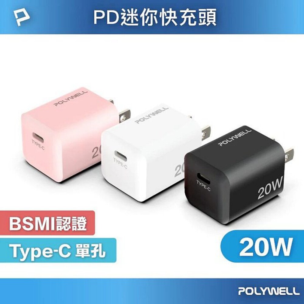 POLYWELL 20W迷你PD快充頭 Type-C 充電頭 豆腐頭 適用蘋果iPhone 安卓 寶