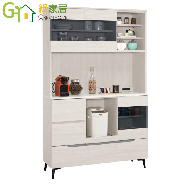 方案1 1入 售價$19757 均價$19757 商品介紹【綠家居】丹尼4尺三門拉盤高餐櫃組合 木紋雙色系+安心材質製造,使用放心+搭配居家更便利,採用防蛀木心板+烤漆五金腳座+防夾手緩衝門片五金+5mm強化灰玻璃+仿石紋耐磨美耐皿桌面板+五金滑軌結構等安心材質製造 ,外層採用防潮耐磨噴漆處理搭配採用開門櫃+拉盤層架+五抽屜+內&外開放層格+便利插座等收納空間設計,全由專人配送到家,專業安心服務,替你省下更多時間!