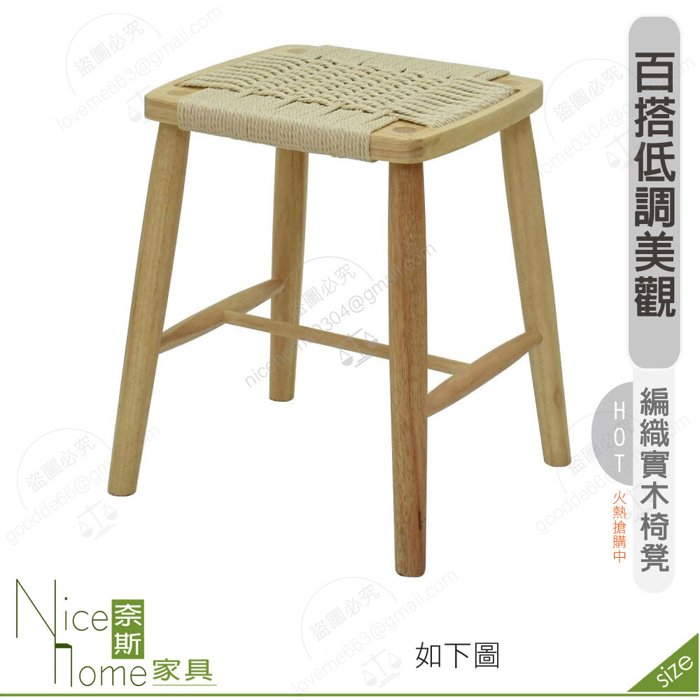 橡膠木實木+編織分類 標籤 尺寸 寬40×深36×高45公分 材質 橡膠木實木+編織 運送方式 廠商出貨,宅配到府 ( 限台灣本島地區,不含郵政信箱 ) 配送說明 本商品為客約配送商品,付款後商店將於 2 個工作天內與您聯繫約定配送時間,請保持手機暢通 ( 商店將優先聯繫收件人 )。