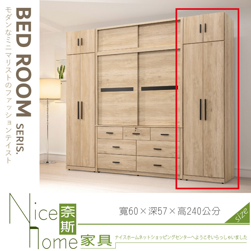 釘附式美背處理分類 標籤 尺寸 寬60×深57×高240公分 材質 採用台灣低甲醛木芯板