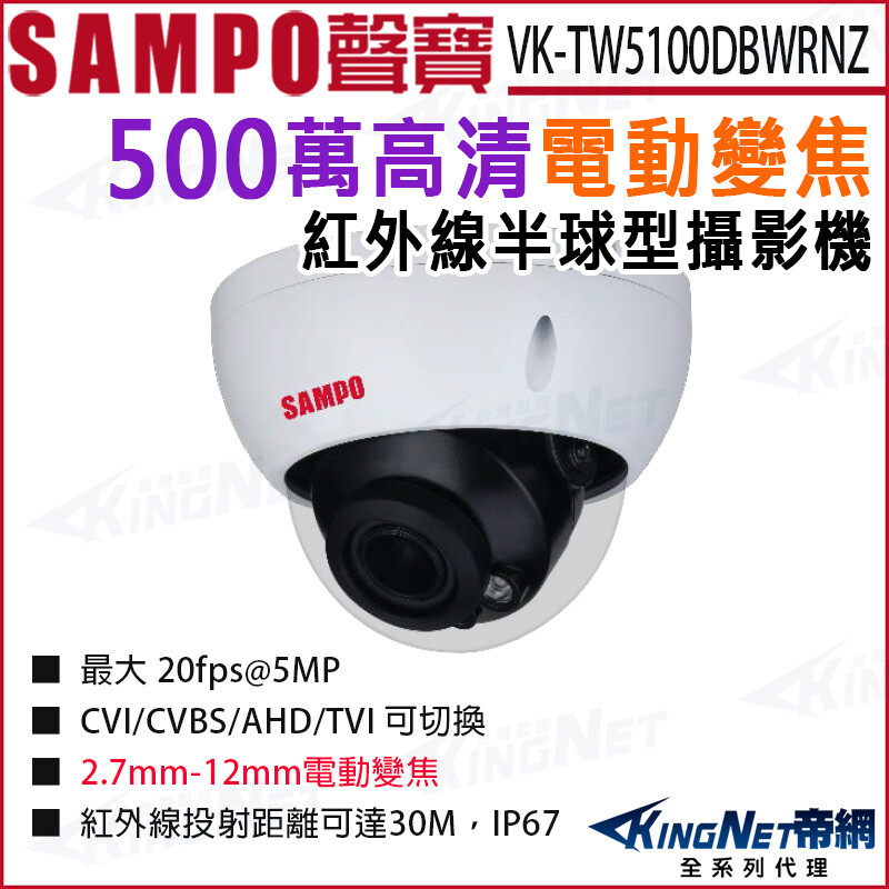 SAMPO 聲寶 VK-TW5100DBWRNZ 500萬 電動變焦 半球攝影機 紅外線30米