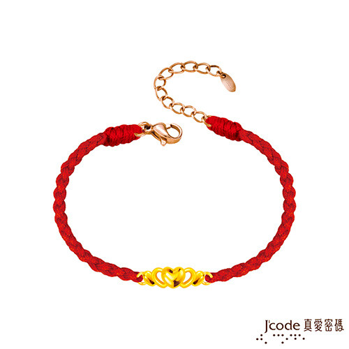 J'code真愛密碼金飾 心漾硬金編織手鍊-小