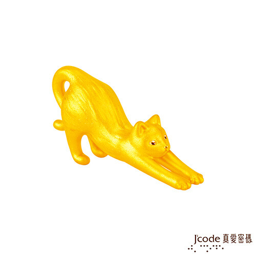 J'code真愛密碼金飾 貓跳台-伸懶腰貓咪硬金擺件