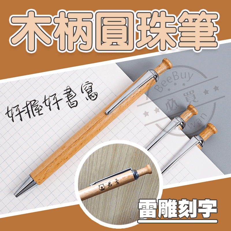 優惠方案方案1 2入 售價$598 均價$299 方案2 5入 售價$1245 均價$249 方案3 10入 售價$1990 均價$199 商品介紹品名:雷雕木柄圓珠筆