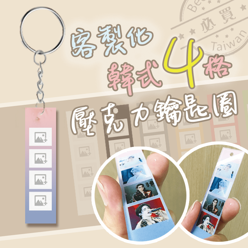 韓系四格鑰匙圈 UV直噴 壓克力 人生四格 寵物 人物 動漫 偶像 韓式拍貼 掛飾 鑰匙扣 禮品 禮
