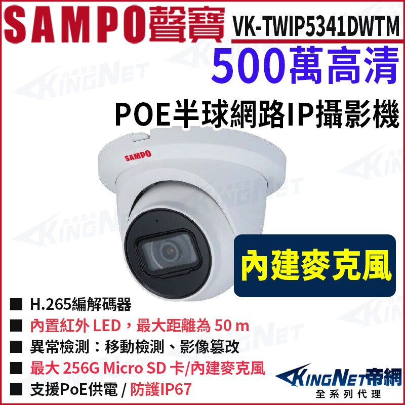 SAMPO 聲寶 VK-TWIP5341DBFA 500萬 內建麥克風 半球型網路攝影機 POE 紅