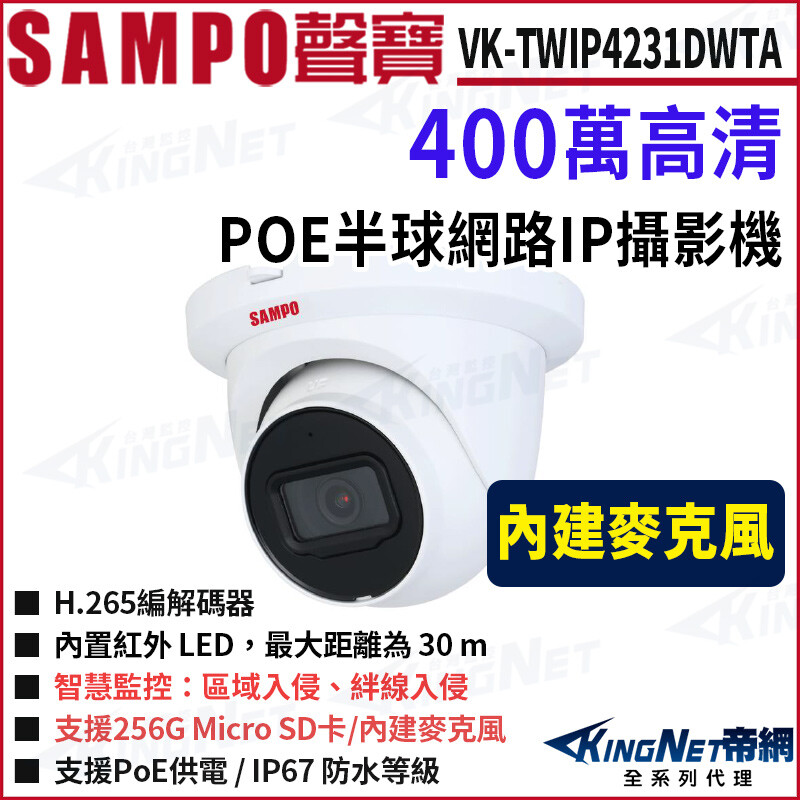 SAMPO 聲寶 VK-TWIP4231DWTA 400萬 星光紅外線 POE 半球型網路攝影機