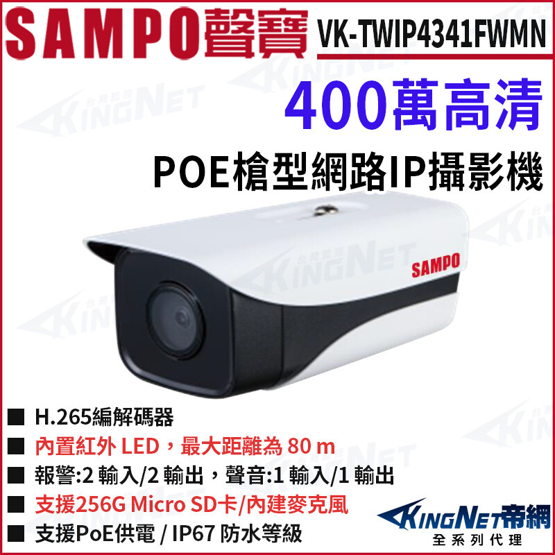 SAMPO 聲寶 VK-TWIP4341DBWA 400萬 POE AI 半球型網路攝影機 紅外線