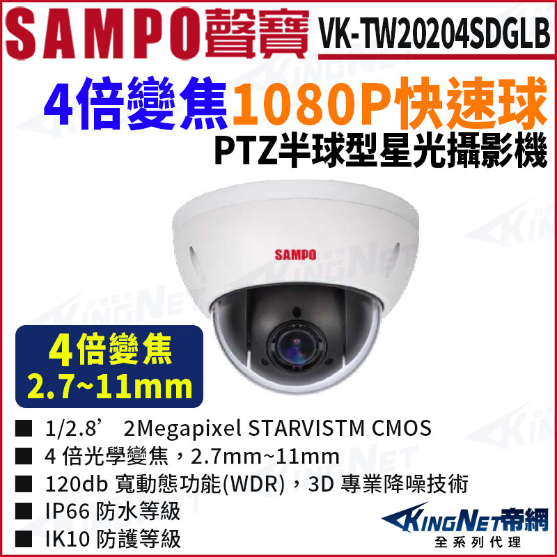SAMPO聲寶 VK-TWIP20204UEG 4倍 200萬 網路快速球攝影機 人臉偵測 POE