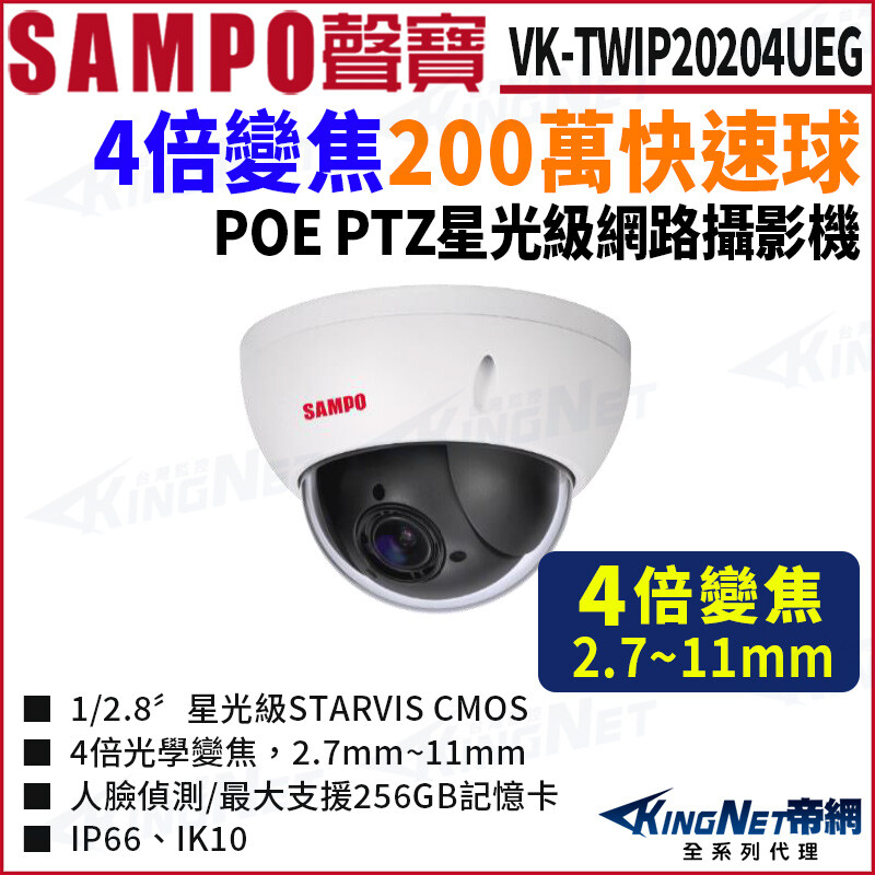 SAMPO聲寶 VK-TWIP92204UEG 4倍 200萬 內建麥克風 網路快速球攝影機 人臉偵