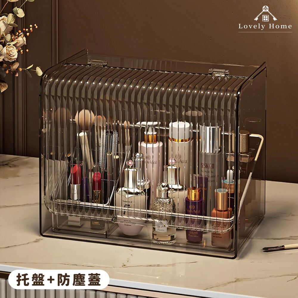 (台中 可愛小舖)疊加化妝盒【托盤+防塵蓋】 置物盒 收納盒 化妝盒 飾品收納 化妝品收納
