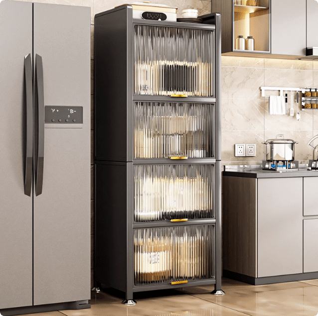 廚房置物架收納櫃 夾縫櫃 落地多層收納櫃子 多功能儲物櫃 防塵帶門微波爐櫥櫃 餐邊櫃 層櫃